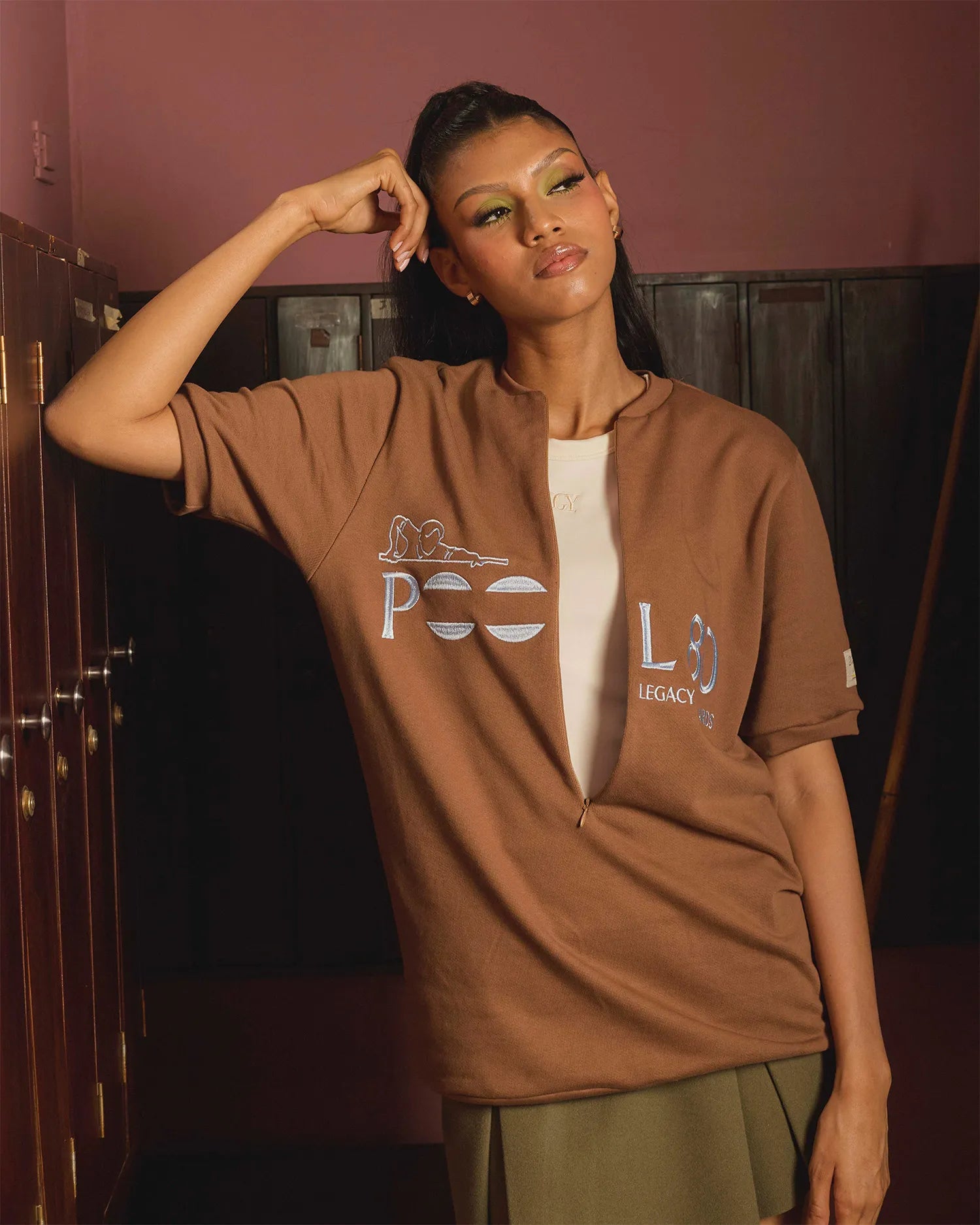Elaborada en algodón licrado, su horma es oversize de corte medio. Disponible...