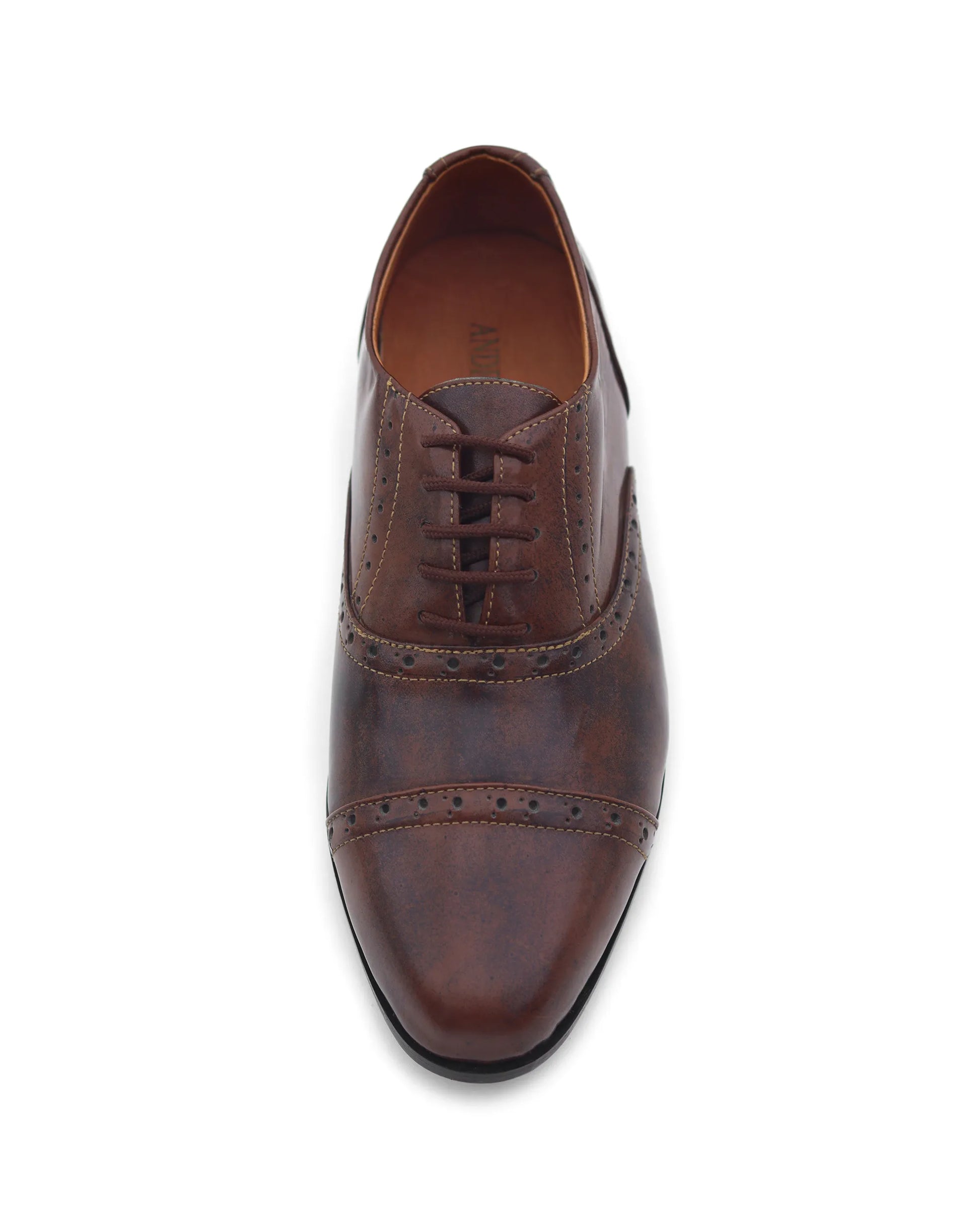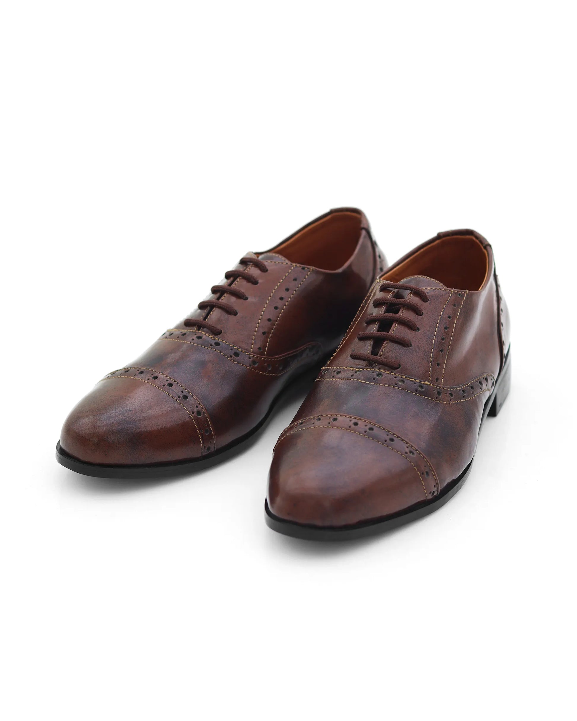 Zapatos Chester en cuero marrón envejecido con detalles brogue. Un equilibrio perfecto entre tradición y distinción.