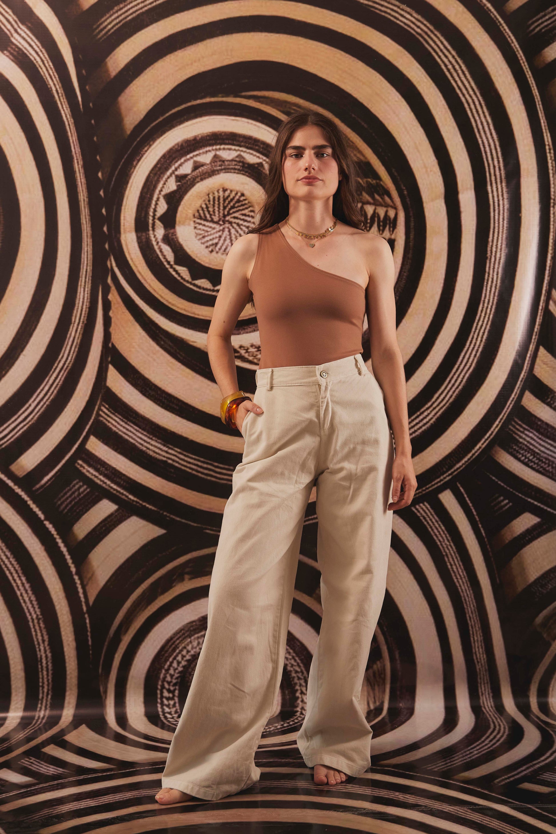 Mov Wide Leg es un pantalón de talle alto y silueta amplia, diseñado para acompañar el movimiento natural del cuerpo.