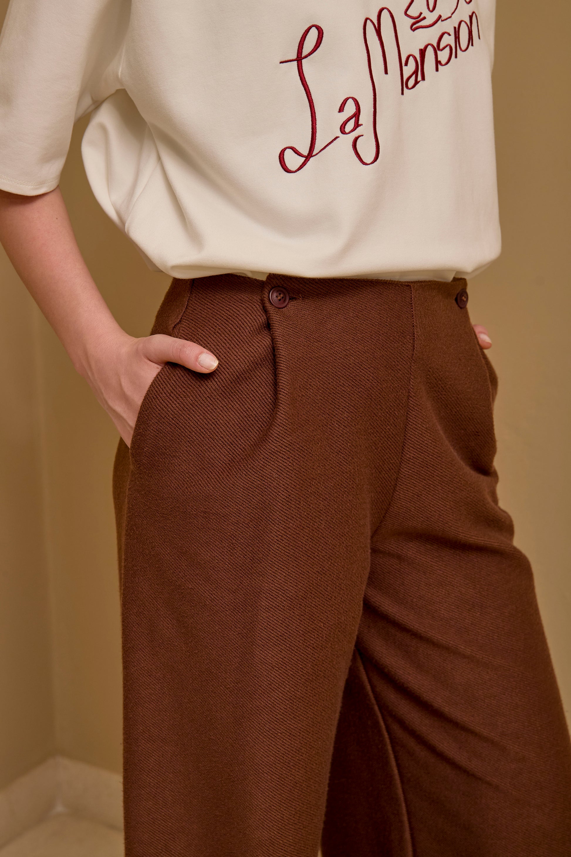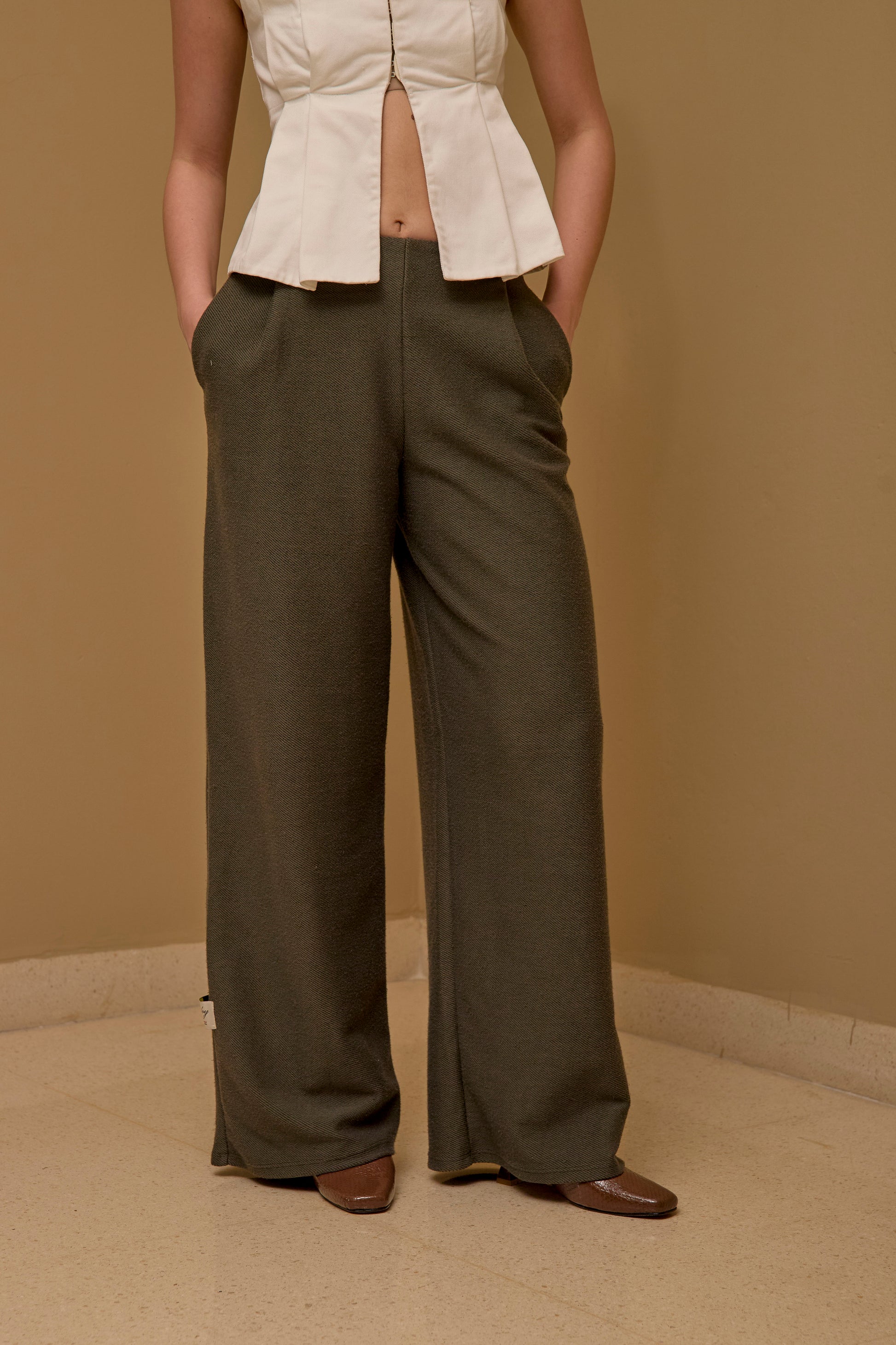 Una prenda de talle alto y corte amplio que combina la precisión del diseño sastre con una comodidad excepcional.