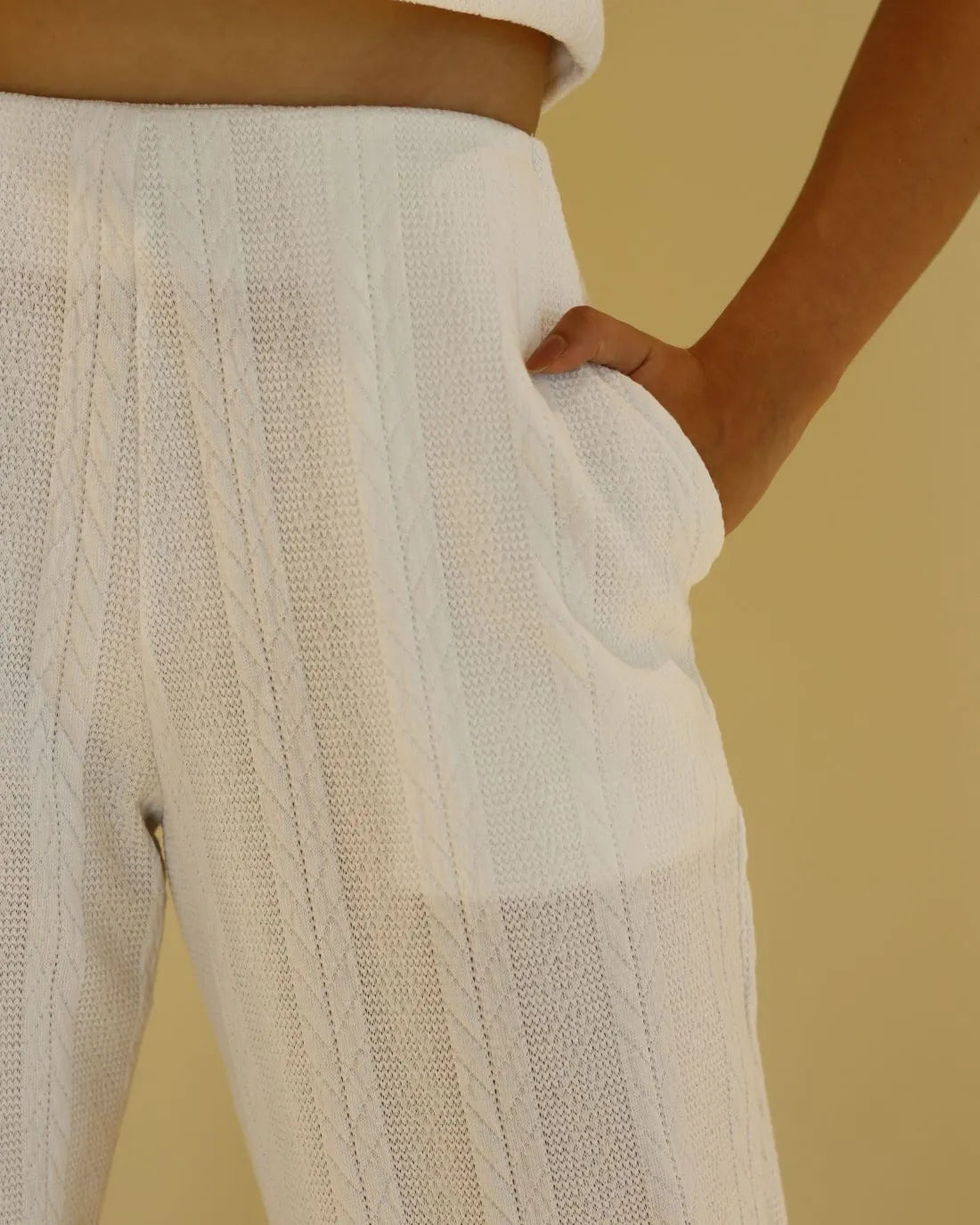 Ligero, fresco y sofisticado: este conjunto en tono marfil está diseñado para resaltar la silueta con naturalidad. El chaleco presenta un escote en V discreto y una estructura limpia que aporta modernidad, mientras que el pantalón de pierna recta y pretina alta estiliza y alarga la figura. El tejido texturizado aporta un toque artesanal y elegante, ideal para cualquier ocasión en la que quieras vestir con estilo sin sacrificar comodidad.